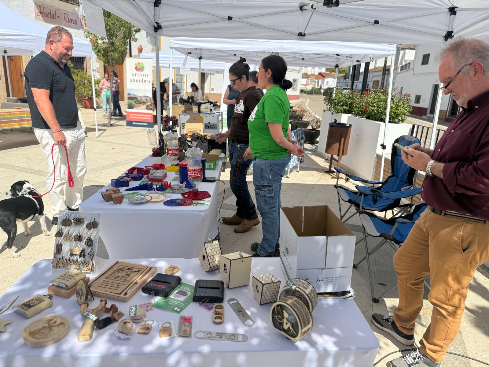 Cerca de una decena de puestos de artesanía (lámparas de lana, cerámica, madera, abalorios), productos y fruta de temporada, mieles, aceites, cerveza ecológica, pan y repostería artesanal, productos ibéricos, aceitunas aliñás, entre otros muchos, conquistaron a los visitantes en esta experiencia tanto gastronómica como cultural en la que se pudo encontrar una amplia muestra de las producciones de la Sierra. También, hubo espacio para publicaciones del territorio como La Máquina, una revista que edita la asociación Muti de Arroyomolinos de León de carácter cuatrimestral que profundiza en la cultura rural e historia del pueblo.