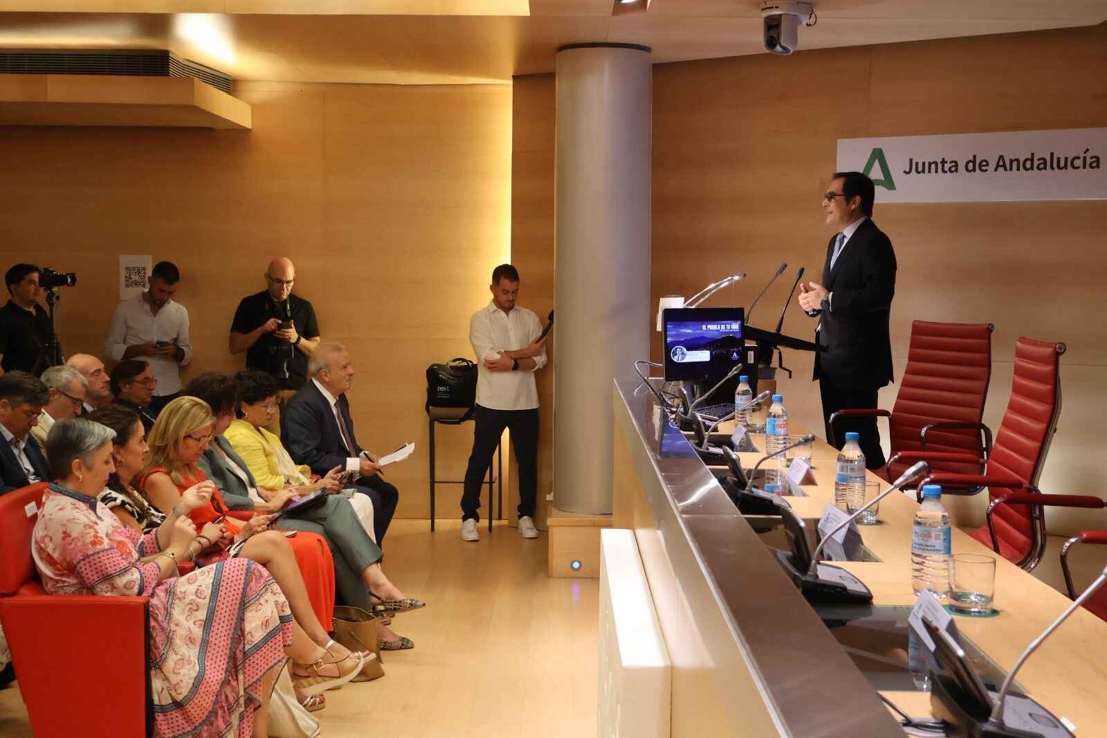 El encuentro reúne a expertos en reto demográfico y responsables de ayuntamientos, diputaciones, Junta y Gobierno central porque, para el consejero de Justicia, Administración Local y Función Pública, José Antonio Nieto, afrontar el reto demográfico es un proyecto de todos. “No es solo el reto demográfico, es el reto del futuro de Andalucía”, ha subrayado.