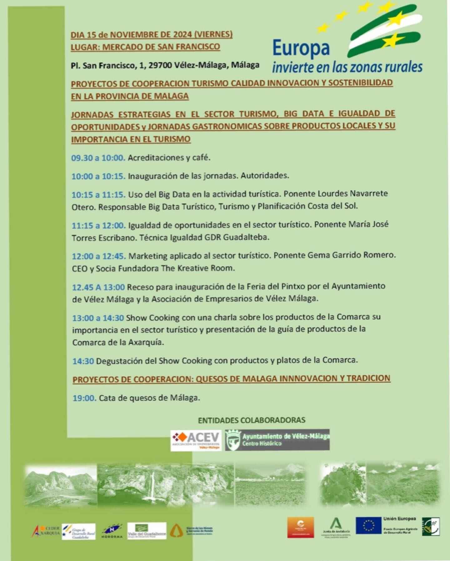Este evento forma parte del proyecto de cooperación LEADER “Innovación, calidad y sostenibilidad del sector turístico en Málaga” de cinco Grupos de Desarrollo Rural de Málaga. En él colabora Turismo y Planificación Costa del Sol